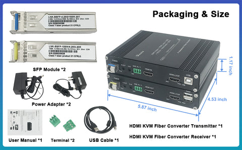 - 【Support USB KVM】The HDMI KVM Fiber Converter with USB keyboard and mouse signal transmission function, you can control the PC, laptop or other devices with USB Mouse and Keyboard from remote end