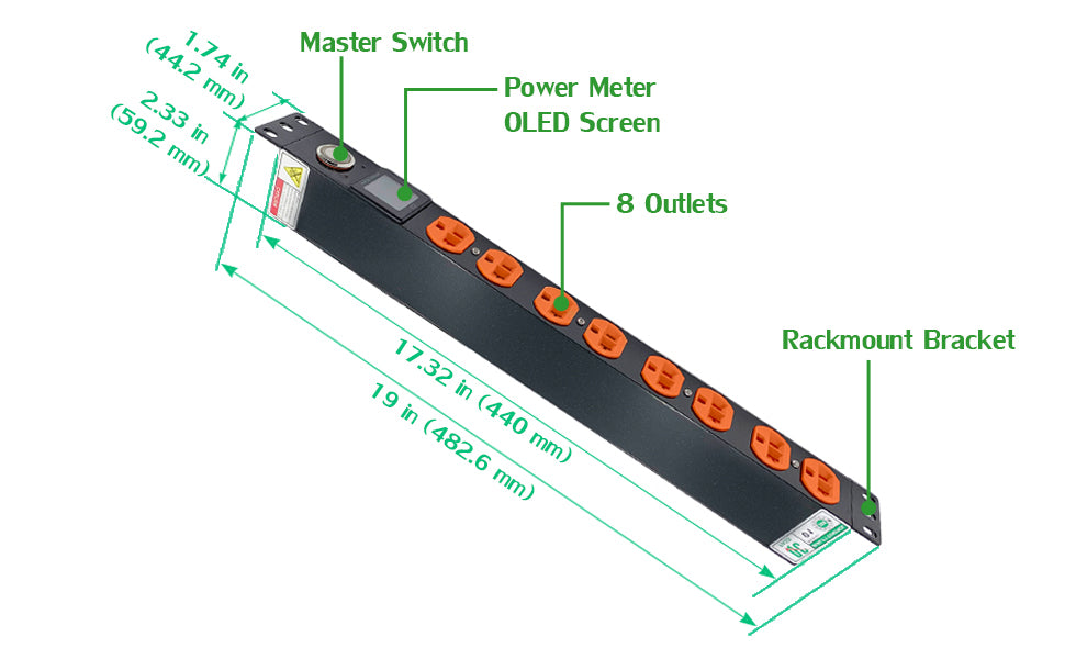 8 Outlets Switched PDU Surge Protection Power Strip with High-Precision Measuring Instruments 1U 19" Rack Mount Metered Power Distribution Unit 100-250V 16A